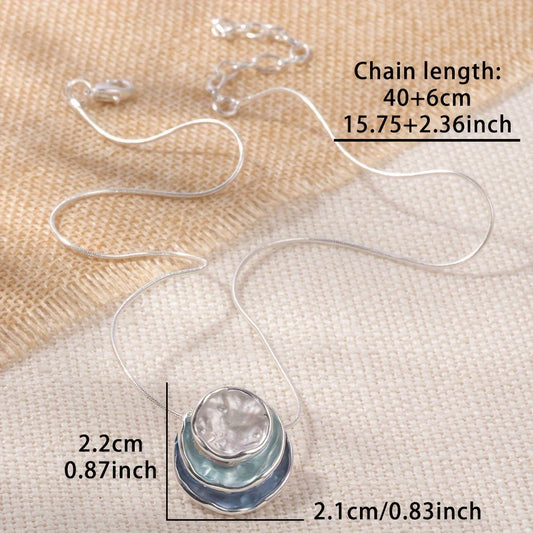 [1pc Elegant Blue Pendant] Elegant Blue Enamel 1pc Pendant Necklace | Zinc Alloy with Golden Accents, Twisted Rope Chain Design, Sophisticated Accessory for Formal or Casual Attire